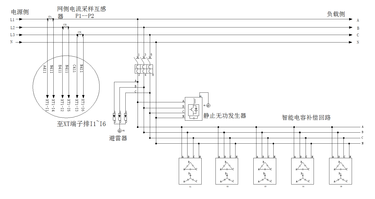 线路调节:能够解决系统三相负荷不平衡的问题,不仅不产生谐波,而且能在补偿无功功率的同时动态的补偿谐波;