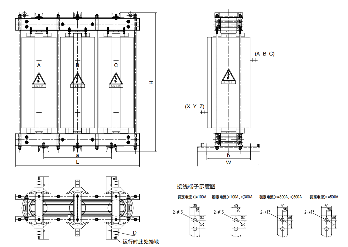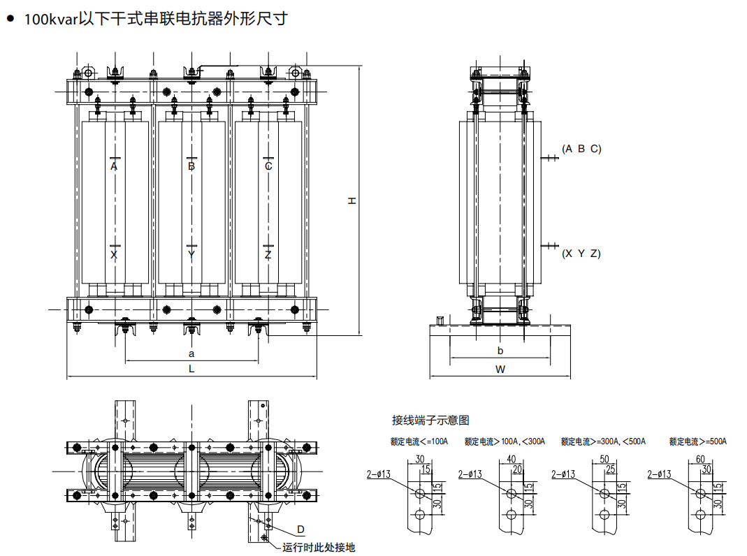 体积结构;高压串联电抗器三相铁芯成黄金分割比例,结构合理,占地体积小,维护更换方便,顶部装有吊环,便于柜内安装及现场施工。