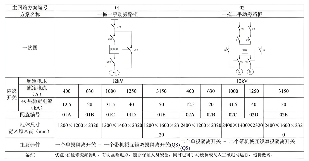 BPF系列高压变频旁路柜,主要应用于10KV电力系统中,与高压变频柜配套,是一种用于高压变频器故障或检修时,能够保证高压电动机可以正常工作的旁路供电设备,主要由高压隔离开关、高压真空断路器、高压真空接触器、带电显示器、操作单元、连锁机构、外壳以及导体等核心部分组成,高压变频旁路柜的切换方式主要有手动旁路和自动旁路两种。手动旁路方式通过高压隔离开关实现,而自动旁路方式则通过真空接触器或真空断路器来实现,这取决于负载的类型和允许的断电时间。在实际应用中,高压变频旁路柜不仅用于异常保护和检修时的安全隔离,还能通过工频与变频的切换实现变频器的工作状态,确保电机的连续运转,从而提高设备运行的可靠性和稳定性。主要应用于发电厂、水厂、工矿企事业等诸多领域。