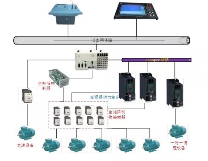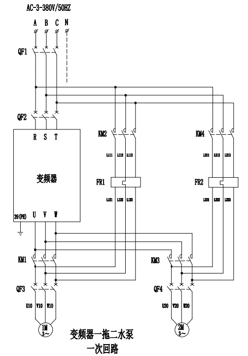 冷暖两用变频  用一台变频器实现夏季冷却水泵变频,冬季温水泵变频的两用功能切换使用。